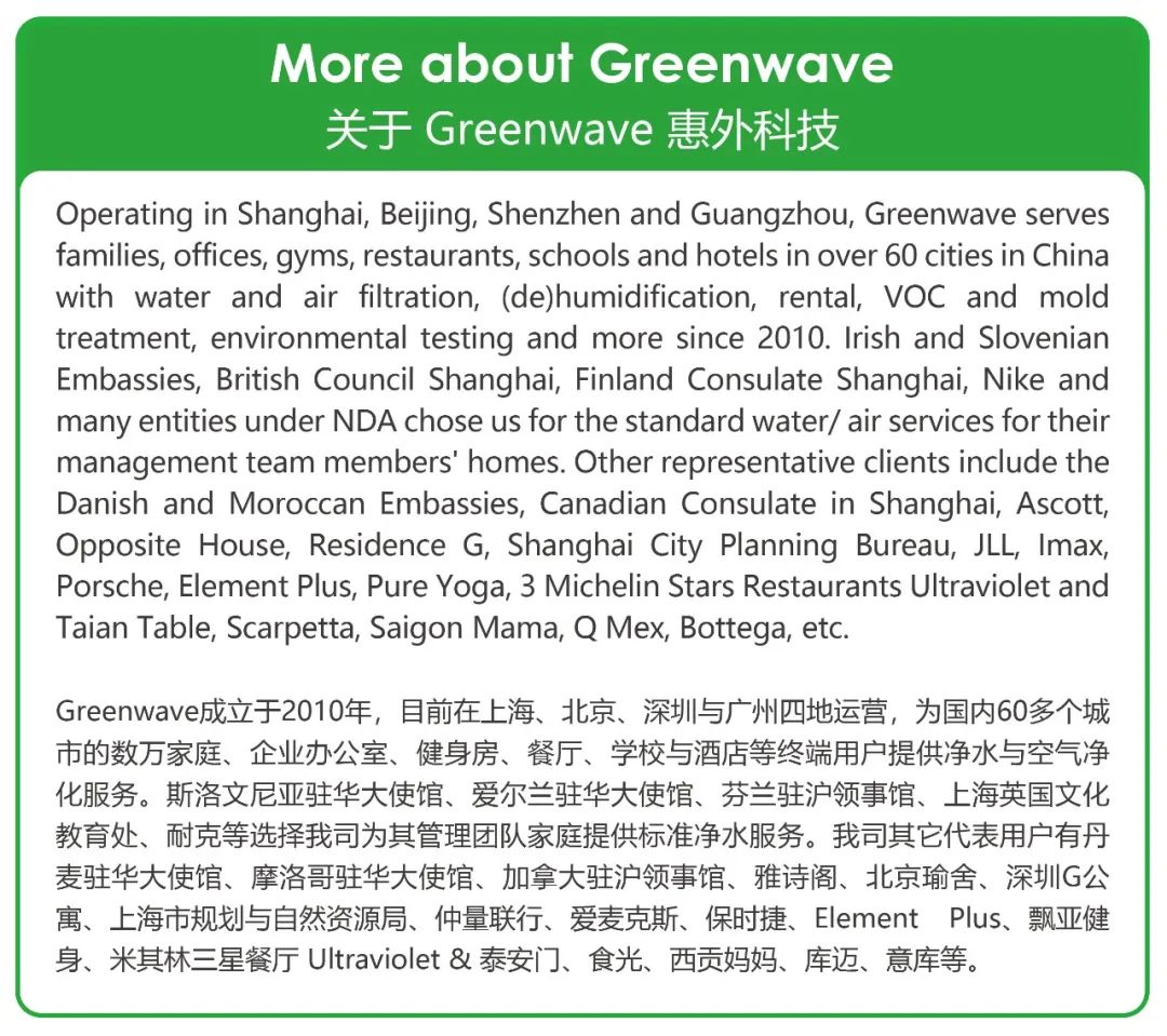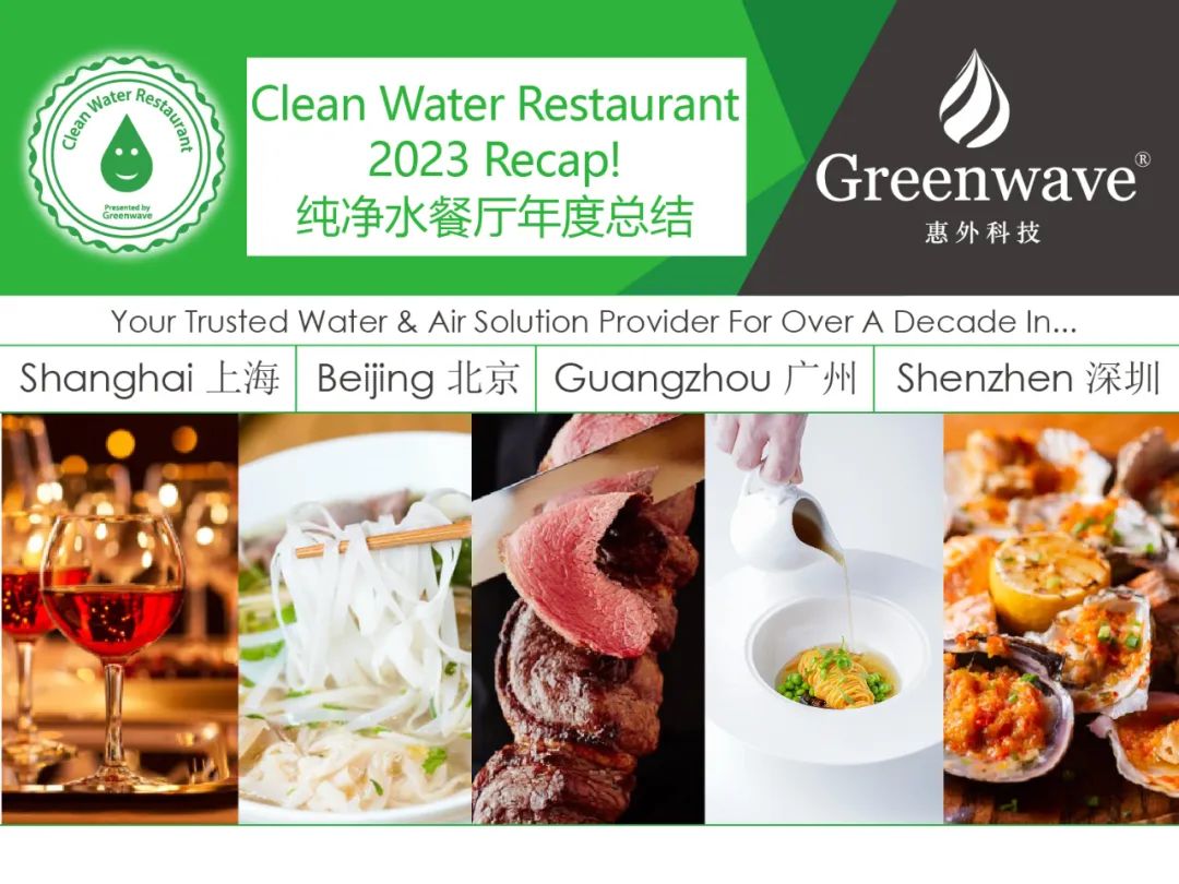 In 2023, Shanghai and Beijing have witnessed a remarkable growth in the form of the Clean Water Restaurant Program. 2023年,上海和北京的纯净水餐厅项目取得了显著的发展。 We first want to thank all of you, our readers and Greenwave clients, for supporting this project throughout the years and making it a great success! If you are not aware of Clean Water Restaurant just yet, keep reading to learn more… 我们首先要感谢所有的读者和Greenwave客户,感谢您多年来对这个项目的支持,让它取得了巨大的成功!如果您还不知道纯净水餐厅,请继续阅读以了解更多……This is Greenwave’s best-known project for outdoor F&B venues using reverse-osmosis water purifiers for their water filtration needs, offering fully purified water to you, their customers, so you can eat with a full peace of mind! 纯净水餐厅项目是Greenwave最著名的商用场所项目,使用反渗透净水器来满足他们的水过滤需求,为您提供完全纯净的水,让您可以放心地享用美食!For more information about Greenwave’s water filtration systems and what it means for restaurants, please check out the following link: 有关Greenwave净水处理系统的更多资讯以及它对餐厅的重要意义,请您查看以下链接: https://www.cleanwaterrestaurant.cn/