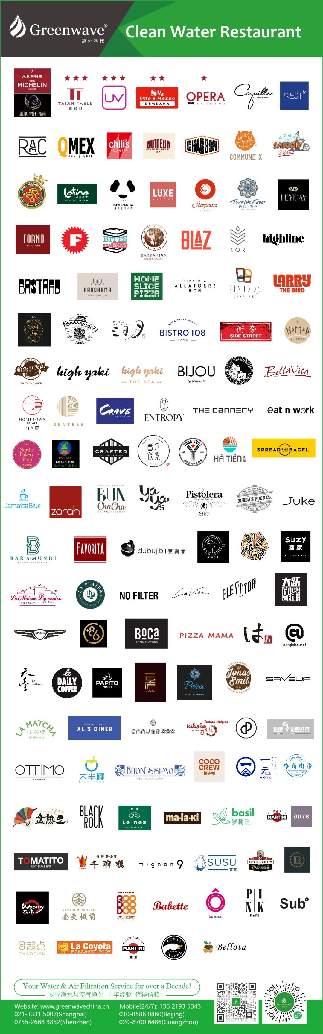 The program has expanded considerably since its creation, with more than 200 restaurants choosing Greenwave for their purified water solutions! 自纯净水餐厅项目创立以来,该项目得到了极大的发展,超过200家餐厅选择Greenwave来提供纯净水解决方案!