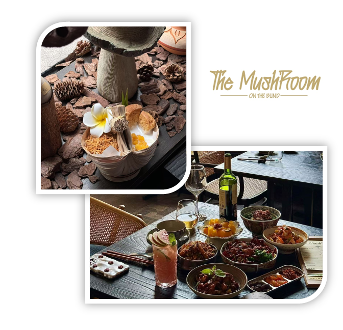 The MushRoom On The Bund·蘑欢云南小酒馆坐落于上海外滩,融合云南民族风情与现代设计。木质家具与绿植打造蘑菇的世界,适合拍照聚会。菜品空运云南菌类,推出菌子烧烤、酸汤锅及升级版米线,搭配花果特调鸡尾酒与云南风味葡萄酒。
