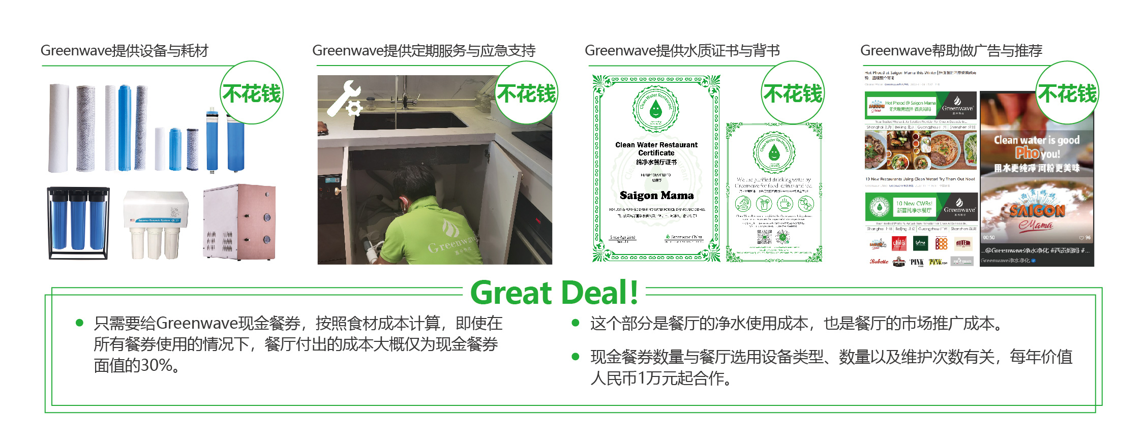 对于新店:无需预付款!只需餐券即可购买净水器,清新地起步!